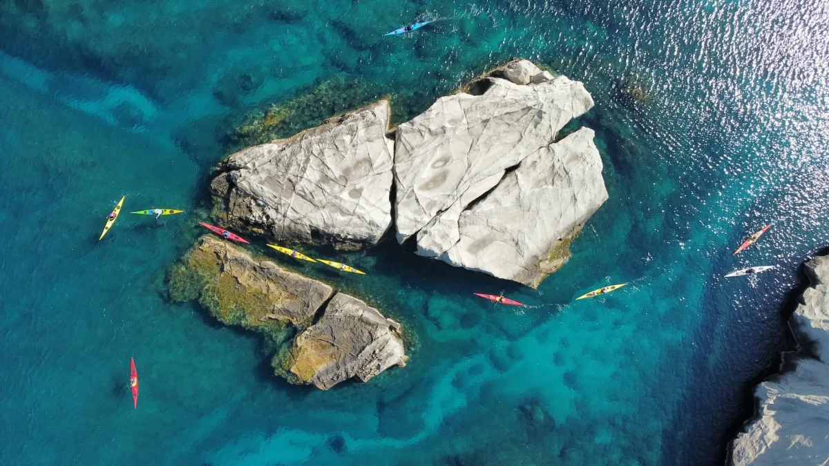 Discover the untamed beauty of Milos from the water with our full-day sea kayaking tour, created for travelers who seek both authentic adventure and refined comfort in one of the most breathtaking destinations in the Cyclades. This exclusive experience takes you along the island’s most remote and spectacular coastline, far beyond the reach of ordinary boat excursions.