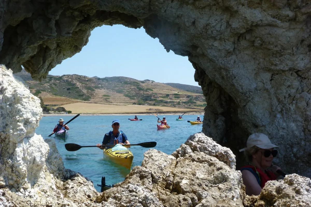 Perfect for both first-time paddlers and seasoned explorers, this is one of the most unforgettable ways to explore Milos. Along the way, you’ll glide beneath dramatic volcanic cliffs, venture into enchanting sea caves and narrow passages, and discover secret coves and pristine beaches accessible only from the water.
